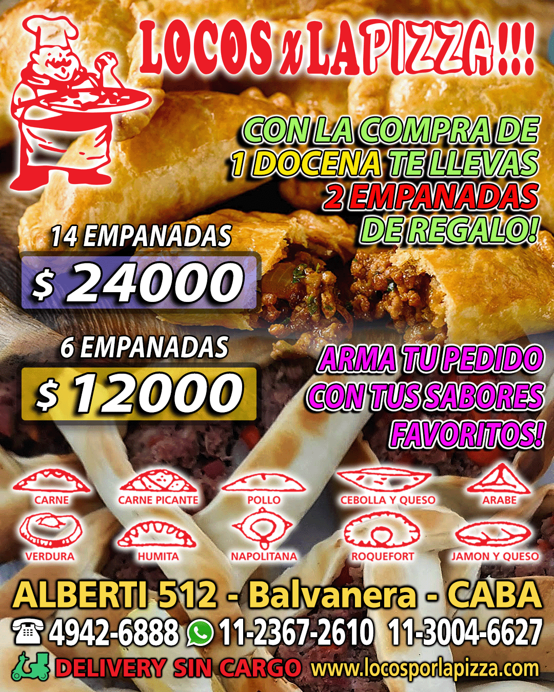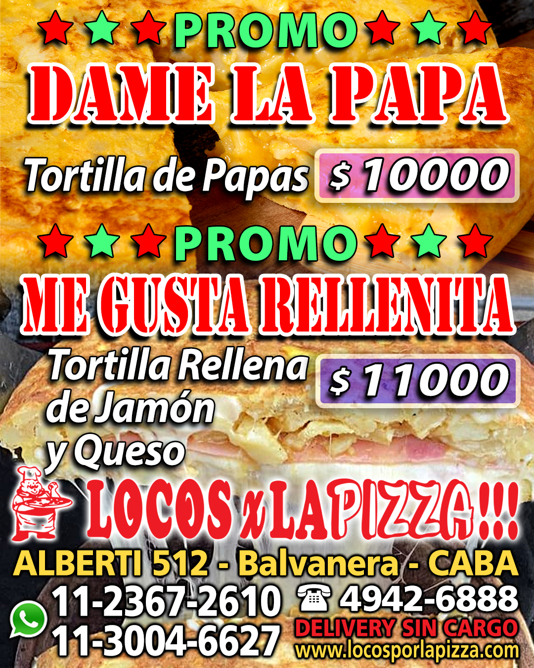 04-locosxlapizza-slider05-locosxlapizza-slider01-locosxlapizza-slider03-locosxlapizza-slider02-locosxlapizza-slider DELIVERY SIN CARGO Y RETIRO EN EL LOCALALBERTI 512 (casi esq. Venezuela) CABA TELÉFONO FIJO: 4942-6888 WHATSAPP 1:11-2367-2610 WHATSAPP 2:11-3004-6627
