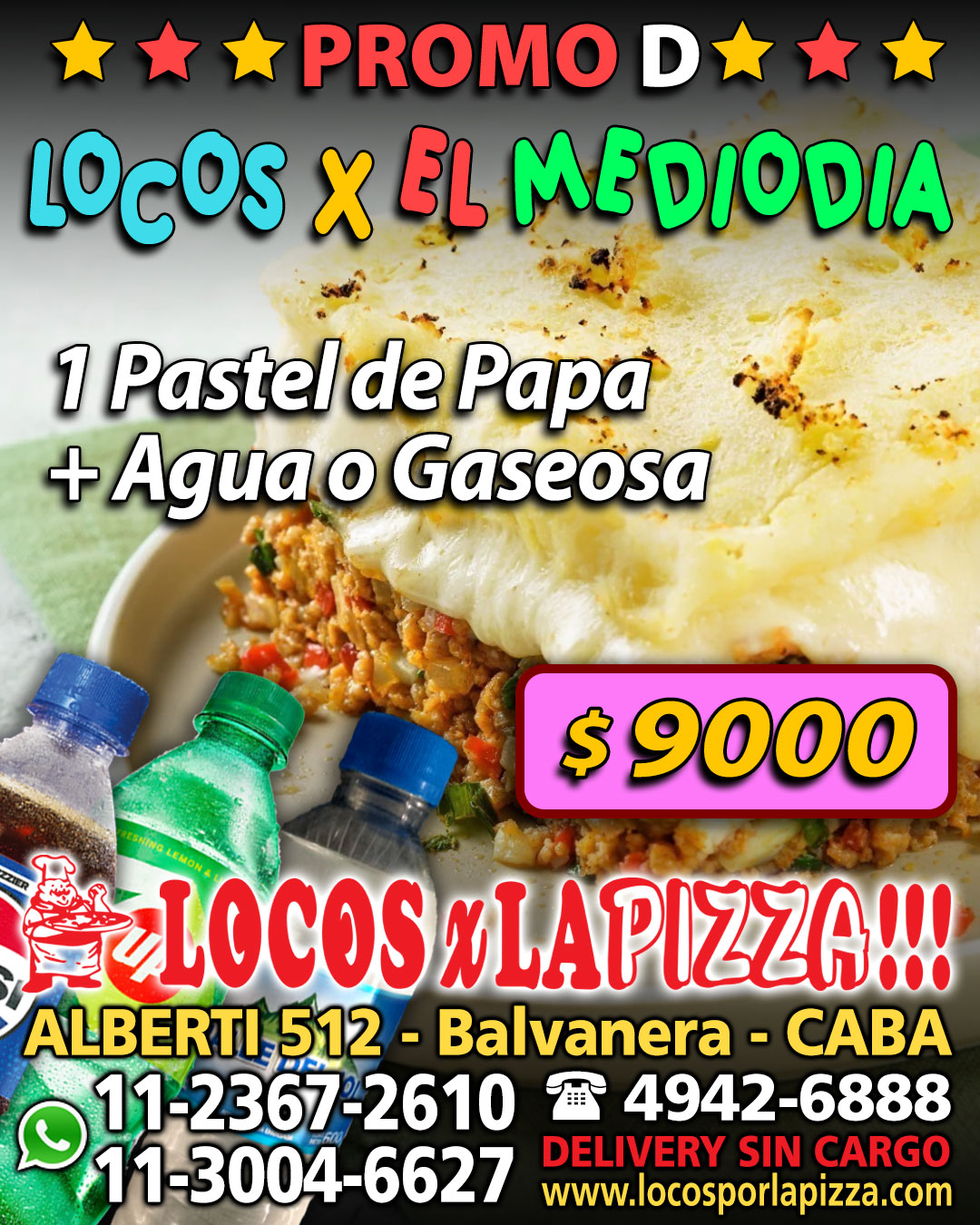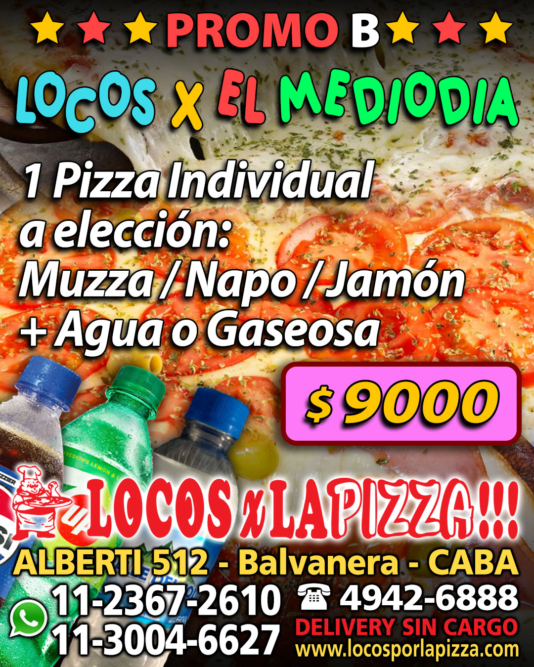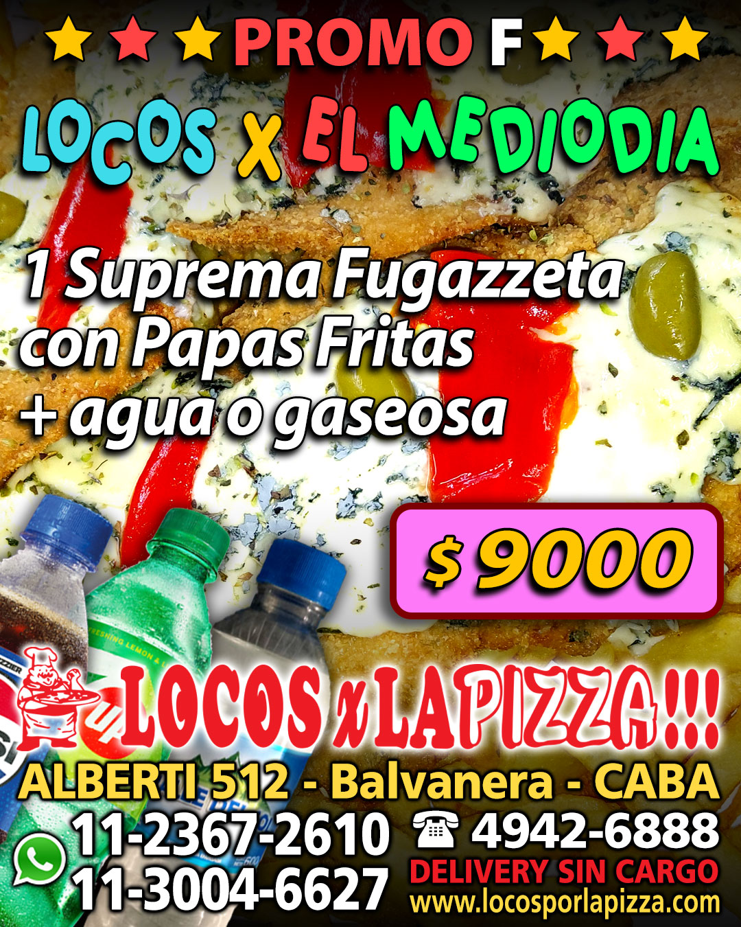 04-locosxlapizza-slider05-locosxlapizza-slider01-locosxlapizza-slider03-locosxlapizza-slider02-locosxlapizza-slider DELIVERY SIN CARGO Y RETIRO EN EL LOCALALBERTI 512 (casi esq. Venezuela) CABA TELÉFONO FIJO: 4942-6888 WHATSAPP 1:11-2367-2610 WHATSAPP 2:11-3004-6627